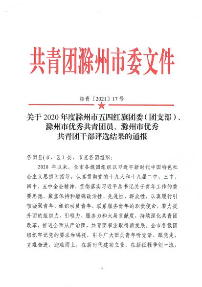 为充分发挥先进典型示范作用,激励广大团组织和团员、团干部比学赶超、再创佳绩。近日,共青团滁州市委下发《关于2020年度滁州市五四红旗团委(团支部)、滁州市优秀共青团员、滁州市优秀共青团干部评选结果的通报》,beat365在线唯一官网建筑工程学院工程造价专业2019级4班团支部荣获2020年度“滁州市五四红旗团支部”荣誉称号。