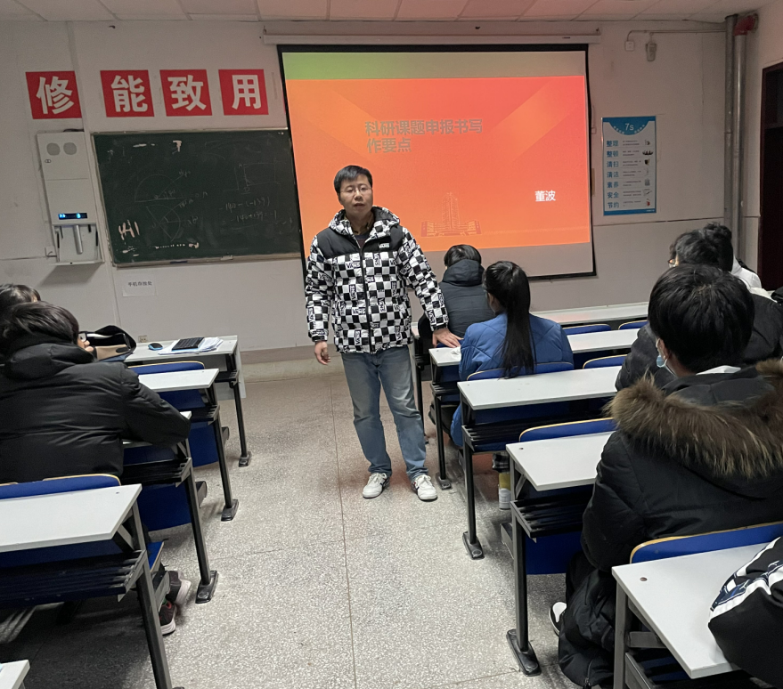 12月4日下午,建筑工程学院董波副教授,在4102教室举办题为“科研课题申报书写作要点”的学术讲座。建筑工程学院建筑环境社、建工、造价、道桥等专业百余学生参加了此次学术讲座,讲座由程毓主持。