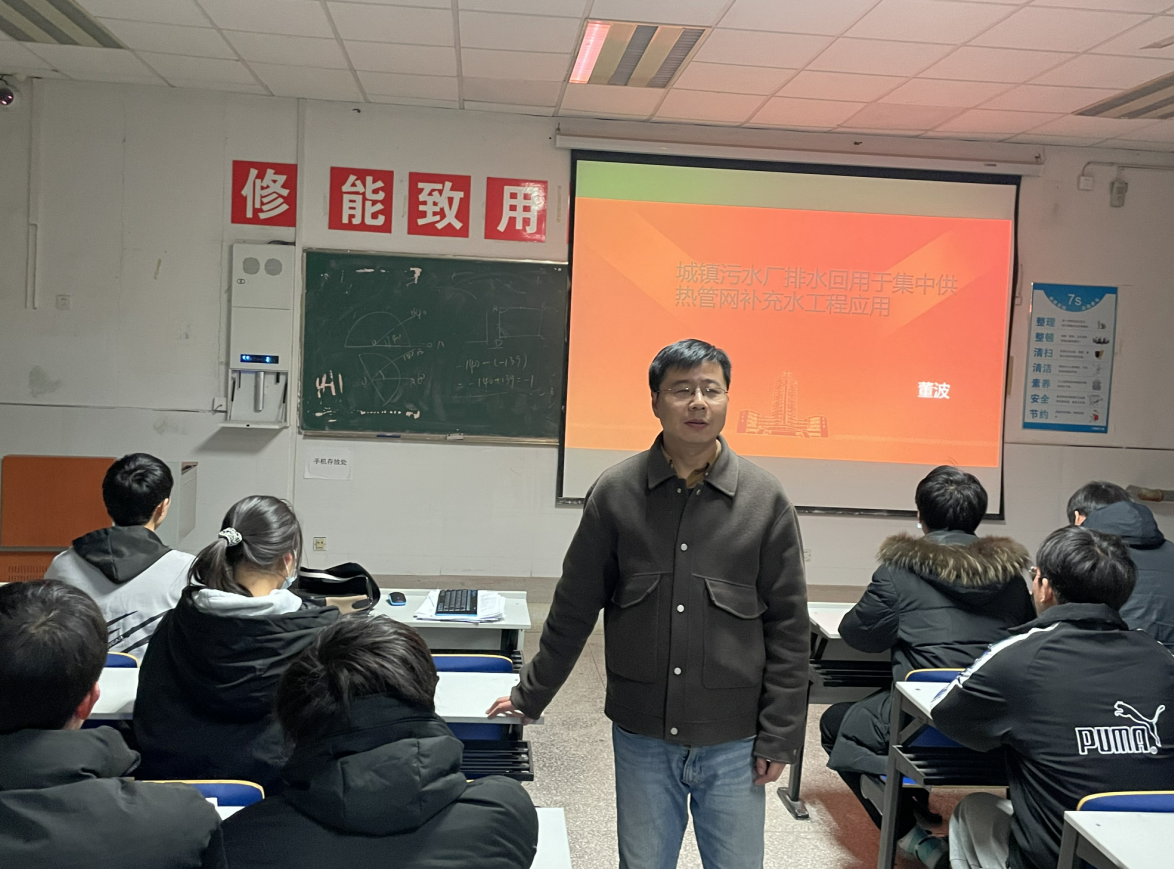 12月5日下午,建筑工程学院董波副教授,在4102教室举办题为“城镇污水厂排水回用于集中供热管网补充水工程应用”的学术讲座。建筑工程学院建筑环境社、建工、造价、道桥等专业百余学生参加了此次学术讲座,讲座由程毓主持。
