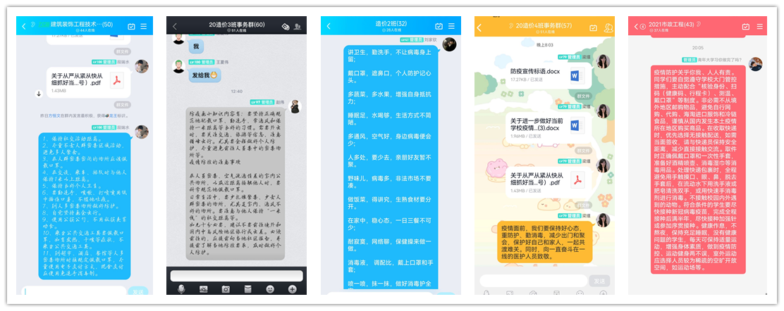 宣讲结束后,同学们积极主动地在班级群内发言讨论。作为学校的一份子,我们应当自觉遵守校园疫情防控措施,不擅自翻越出入校园,做好个人防护,支持疫情防控工作,积极为校园疫情防控贡献力量。