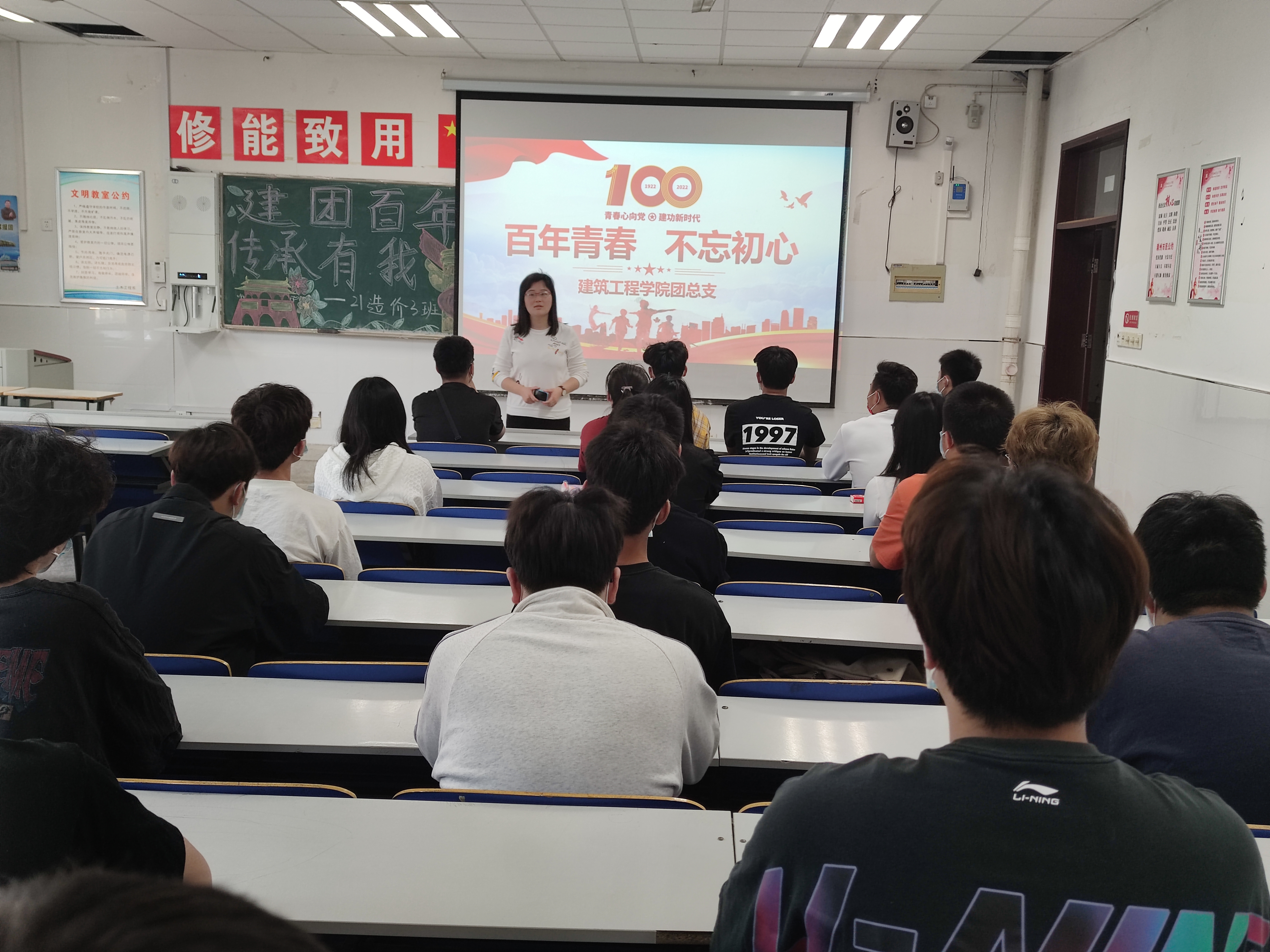 2022年是中国共产主义青年团成立100周年。回望百年,青春向党;百年青春,不忘初心。每一次搏击风浪的天空下,都激荡着青春的旋律;每一个勇毅前行的足迹中,都饱含着奋斗的艰辛。为庆祝建团百年,激昂青春奋斗,引导广大青年学子“不忘初心使命,不负时代韶华”,5月4日,建筑工程学院团总支书记谭康慧为入团积极分子及2021级建设工程监理团支部做题为“百年青春 不忘初心”的主题团课。