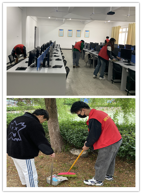 青年学子们响应学院号召,充分发挥志愿服务精神,大家干劲十足、分工合作、齐心协力,打扫细致认真。身着红色马甲的青年志愿者在校园中成为一道靓丽的风景线。
