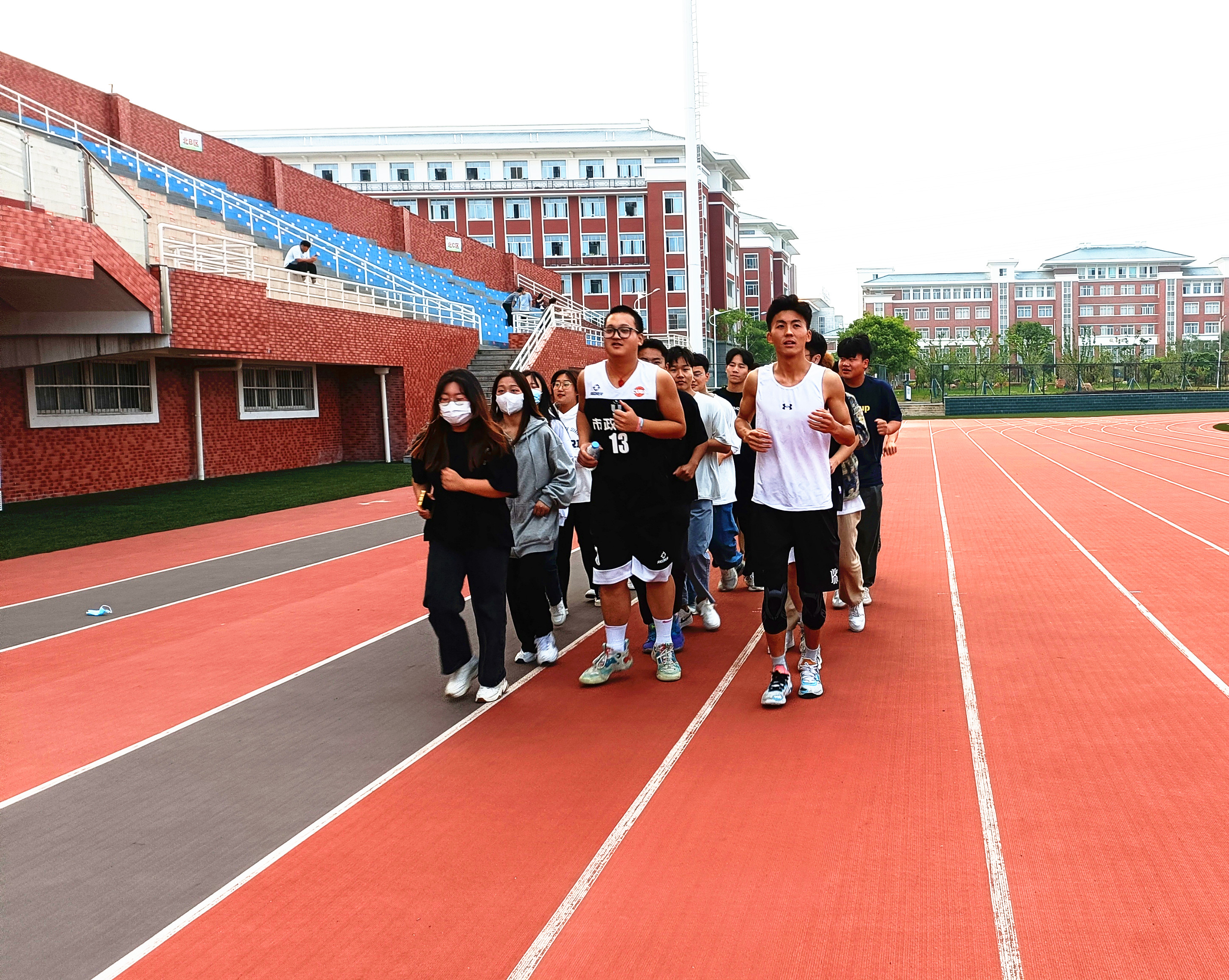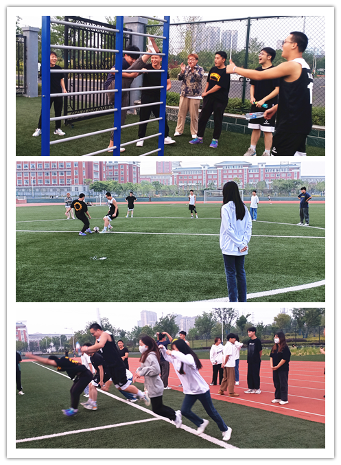 在活动当中,同学们在操场上迈着欢快的步伐,发挥出积极拼搏的精神,娴熟配合、奋勇坚持,在操场上展示出了大学生敢于争先、团结友爱的青春风采。