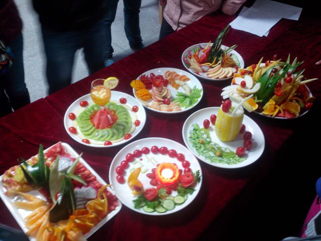 4月22日下午,我院第一届水果拼盘比赛总决赛在食堂二楼举行。来自8个系的24名选手经过激烈的角逐,比赛成绩终见分晓:其中土木系选派的选手获得二等奖。