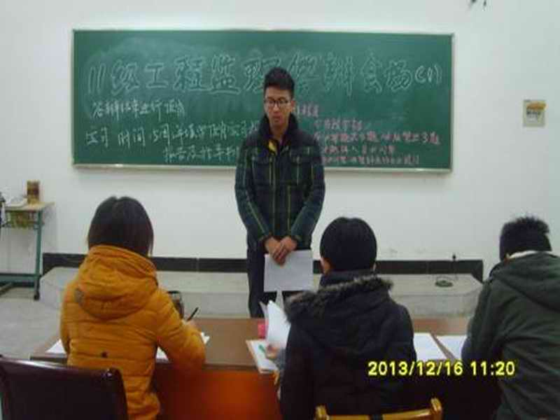 2013年12月16日上午8时,土木系2011级工程监理专业毕业生毕业答辩在4213和4215教室正式举行。他们把准备了四周的设计成果向答辩老师展示。答辩未开始时,场外的气氛已然严肃,学生们都手捧准备好的设计资料在紧张的翻看、查阅,等待大学期间最后一场实战性和挑战性的“考试”。答辩过程中,同学们表现良好,有面对答辩组老师犀利的问题沉着应答,也有和答辩老师的唇枪舌战,据理以辩的。