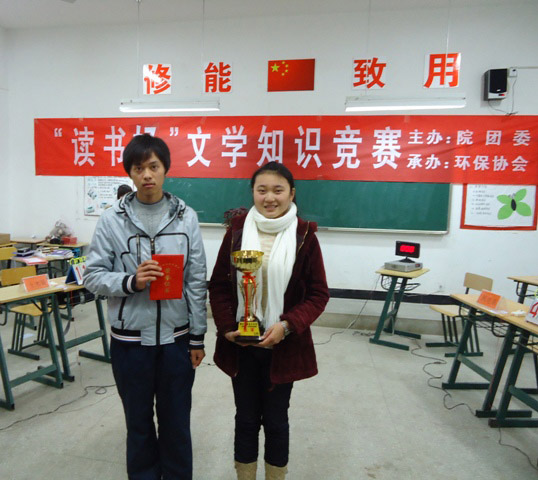 12月16日晚,院团委在读书月活动期间举办了“读书好”文学知识竞赛,各系派出2名同学参加。经过几个星期辛苦准备和当晚激励的角逐,我系的刘慧青同学获得银奖。