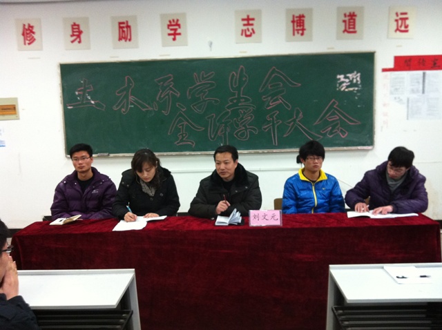 3月2日中午12点30分,土木系学生会召开了2012年春节后的首次全体会议,土木系团总支组织所有团学干积极参加,系书记刘文元也放弃中午休息时间,对本年度土木系的学生工作做了重要指示。