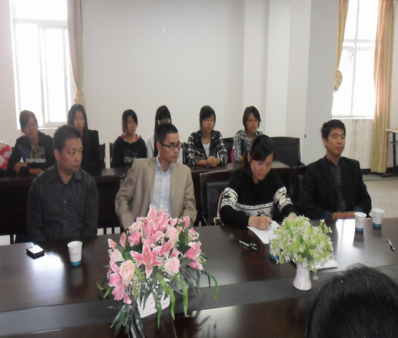 9月22日上午,滁州市丰乐房地产开发公司朱经理一行四人来土木系招聘09级造价专业学生,土木系书记刘文元、09 级造价专业辅导员程毓出席了本次招聘会,系书记刘文元在招聘会上讲话,鼓励学生对招聘单位提出自己的要求和看法,融洽洽谈,争取招聘双方达成协议。本次招聘会标志着土木系2011届毕业生就业工作正式启动。