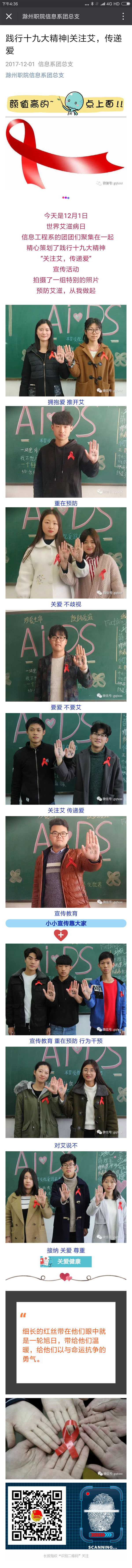 2017年12月1日是第30个世界艾滋病日,为践行党的十九大精神,更好地开展艾滋病防范知识的宣传,信息工程系红十字分会组织团干们在一起拍摄了一组特殊的宣传照片,当日,这条主题为“关注艾,传递爱”的链接在朋友圈悄然火爆。