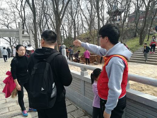 美丽的琅琊山风景秀丽,志愿者们无暇顾及美好春色,一大早就赶到各个服务点为游客提供贴心的服务和帮助,充当义务讲解员,为游客指引路线及拍照,同时还开展了文明劝导,让市民和游客更深入地了解惠州,用微笑服务赢得了游客的赞许。