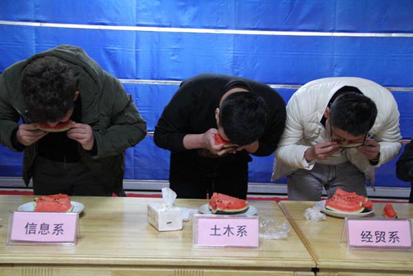 开幕式结束后,“我为痴狂”吃西瓜比赛以及“美食气球墙”知识竞答活动依次举行,同学们在这两项活动中收获到了快乐与满足。随后的几天里,我系在“水果拼盘”活动、“炒菜”比赛以及“包饺子”大赛中充分展现实力,分别获得第五、第五和第六的名次。