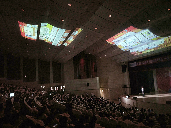 我系工作人员花了两个小时左右的时间在现场架设台式机,摄像机,麦克风,网线,电源线,比赛开始后默契配合,紧张工作两小时,为本次活动提供了优质的服务。比赛现场使用微信上墙、弹幕的形式与观众活动,同时开通直播让场外的同学们通过手机观看节目,为支部同学加油助威,同学们对这一创新形式的反响十分热烈,纷纷参与其中。