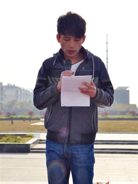 团员代表宣读《“从点滴做起 共建节约型校园”倡议书》