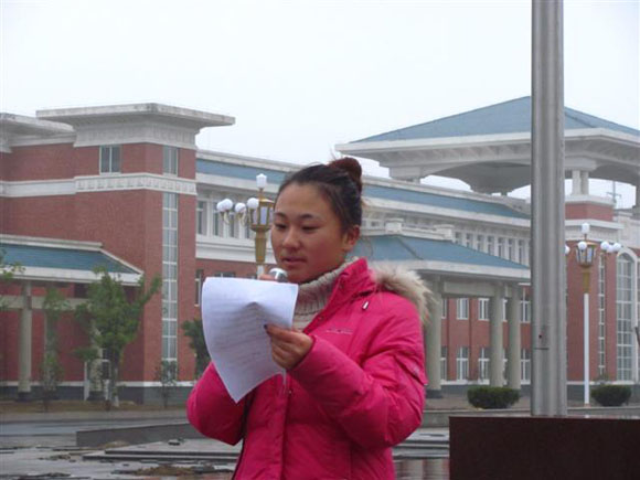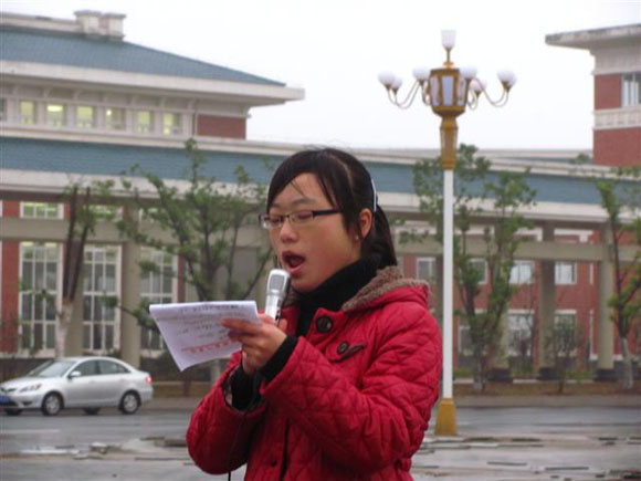 在庄严的国旗下,10级计维2班团支书马志华同学宣读了团干“创先争优”承诺书,承诺书中表示要始终把学习摆在首要位置,牢固树立团总支工作的责任感和使命感,自觉遵守学院的各项规章制度,充分发挥班级团支部的整体作用,做一个不计名利、发扬奉献精神的学生团干。