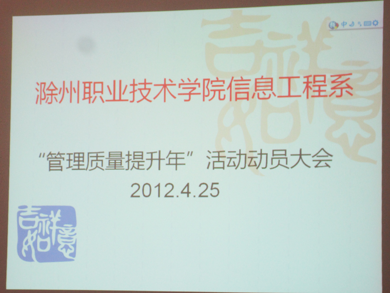 本着《beat365在线唯一官网“管理质量提升年”活动实施方案》的指导思想,2012年4月25日下午信息系在系办公室召开了“管理质量提升年”动员大会。会议由卜锡滨主任主持,吴昌雨副主任详细讲解了“管理质量提升年”的具体实施方案,为参会教师理清工作思路、明确目标任务,安排了开展“管理质量提升”活动的四个阶段的时间节点以及四个阶段需完成的具体任务。