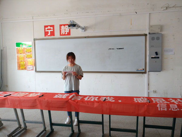 为进一步做好高校学生资助诚信教育工作,信息工程系继诚信主题班会活动后,近期在2510教室举行“诚信教育”主题系列活动之宣誓活动。