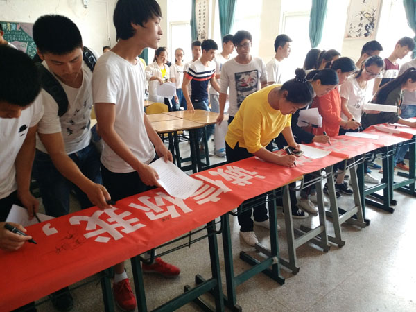 在此次活动过程中,由16级软件一班刘永波带领大家进行了庄严地宣誓,整个活动现场气氛庄重严肃,充分体现了同学们对诚信贷款、诚信还款践行的决心。最后,参加活动的同学们在“爱心助学,学子圆梦,诚信你我,感恩社会”横幅上签名并留影纪念。