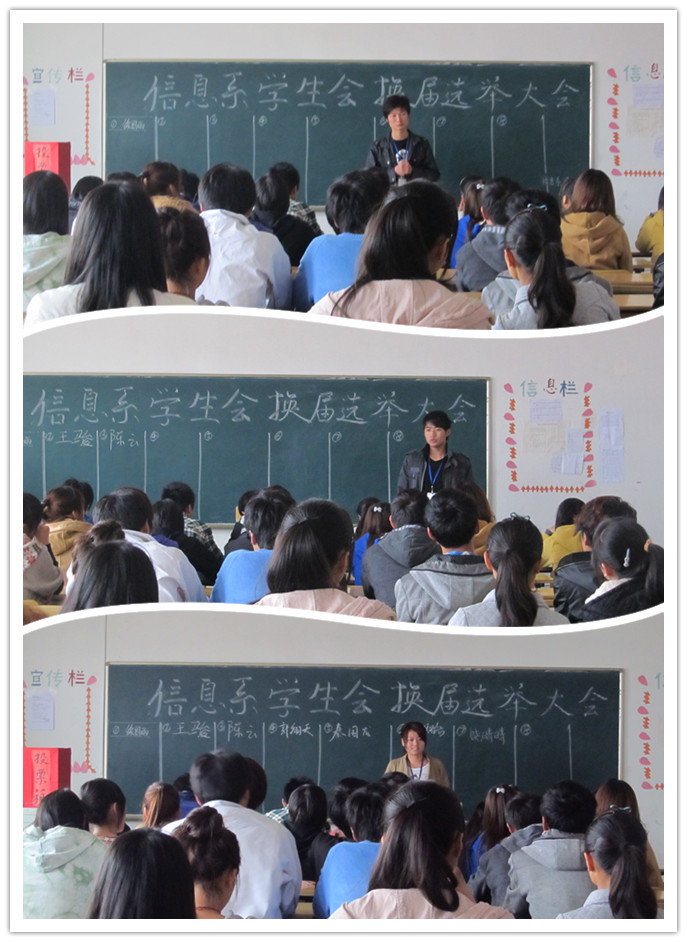 信息工程系学生会主席团换届在即,结合新一届主席团8名候选人的学习成绩、综合排名、学生会表现和班级表现,最终10计应郭翔天、10图形饶晴晴和10信管王骏三名同学被确定为我系学生会2011届主席团成员,将于下周一正式上任。