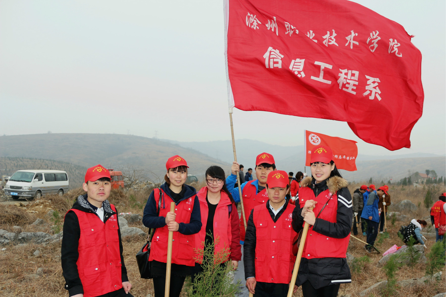为了宣传森林效益,激发当代大学生爱林,造林的感情,改善生态环境美化家园,2015年3月14日信息工程系志愿者在南谯团区委和beat365在线唯一官网信息工程系团总支的组织下参加滁州市青年植树活动。