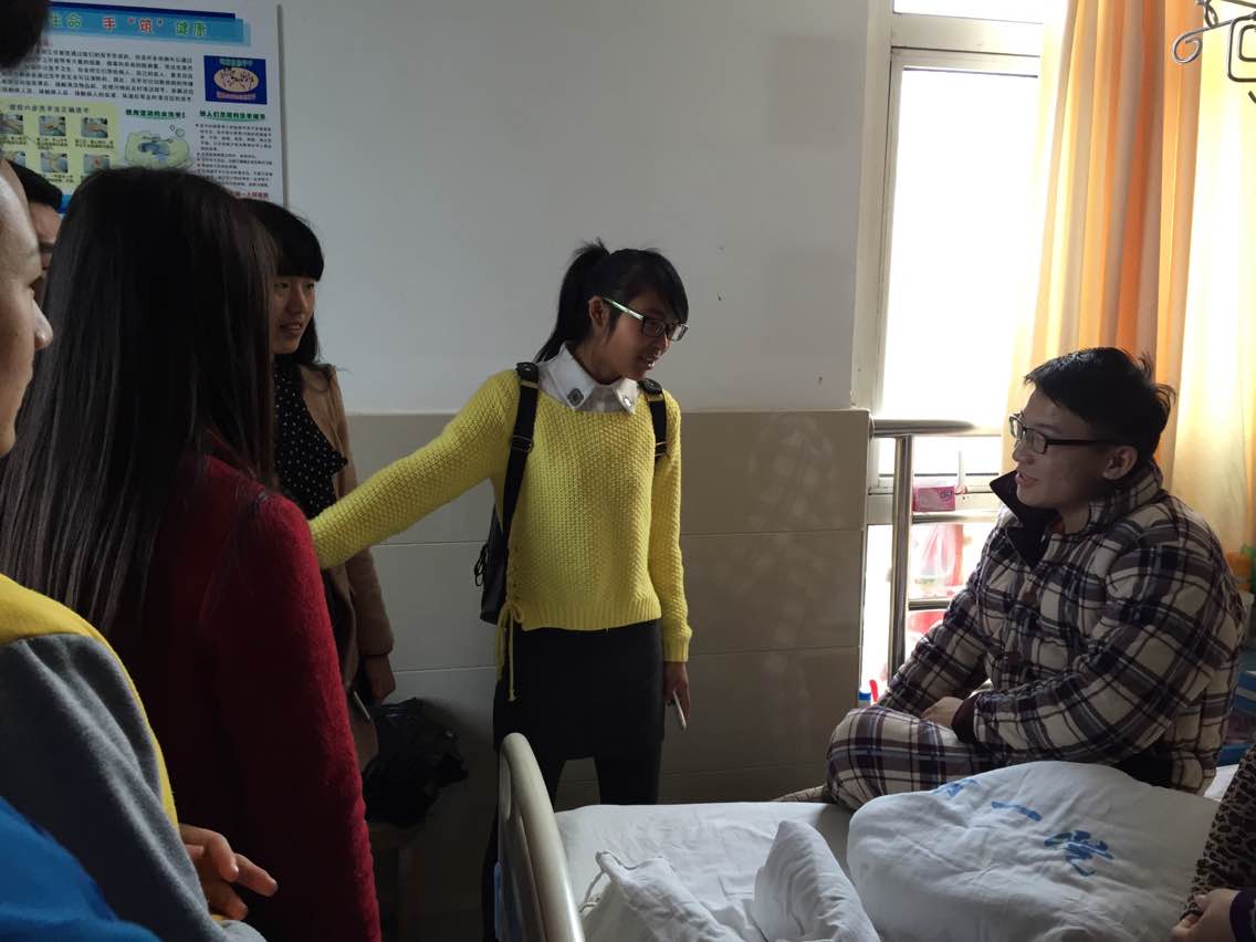 2015年3月21日,信息工程系团总支组织志愿者去医院看望江坤同学,同时带去了13软件班级同学为江坤精心录制的祝福短片。