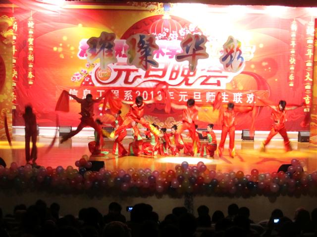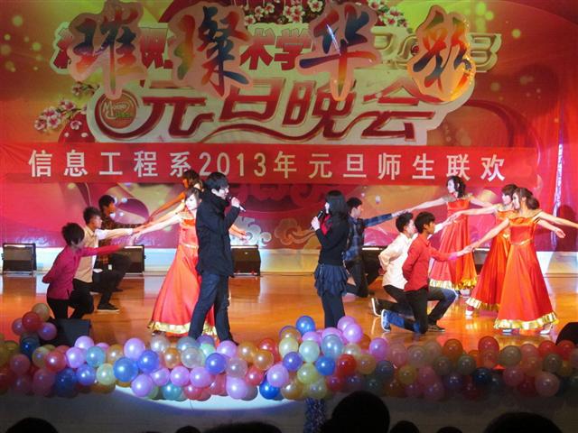 舞袖翩翩,浓墨重彩展现今日成就;华章谱就,激情昂扬共赴明日征程。2012年12月29日下午三点,beat365在线唯一官网新报告厅内歌台暖响,青春洋溢。信息工程系“璀璨华彩”2013年元旦师生联欢会在此火热开场,院团委和我系领导与广大师生欢聚一堂,享受节日的喜悦,感受元旦的氛围,共同庆祝新年的到来。