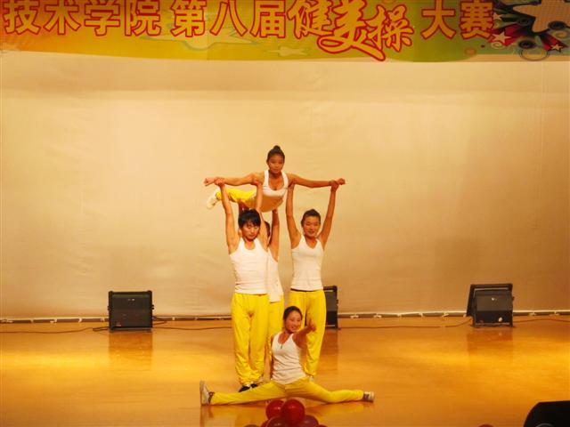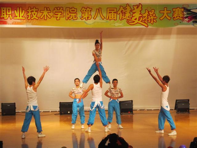 2012年12月12日下午,beat365在线唯一官网第八届健美操大赛在学院新报告厅拉开帷幕。本次大赛由信息工程系团总支承办,并得到了团委和体育部的大力支持。院团委书记王蓓蓓、团委副书记刘杰、团委副书记程诚等9名嘉宾出席了本次大赛并担任评委。来自各系部的10支参赛队共60余名健美操运动员参加了角逐。最终,技师学院代表队技压群雄,一举夺得全场比赛的最高分。同时,院健美操队也为现场观众奉献了一场展现青春力量与美的精彩表演。