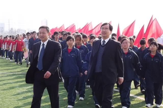 党总支书记程洪斌和系分工会主席李云松老师带领我系方阵