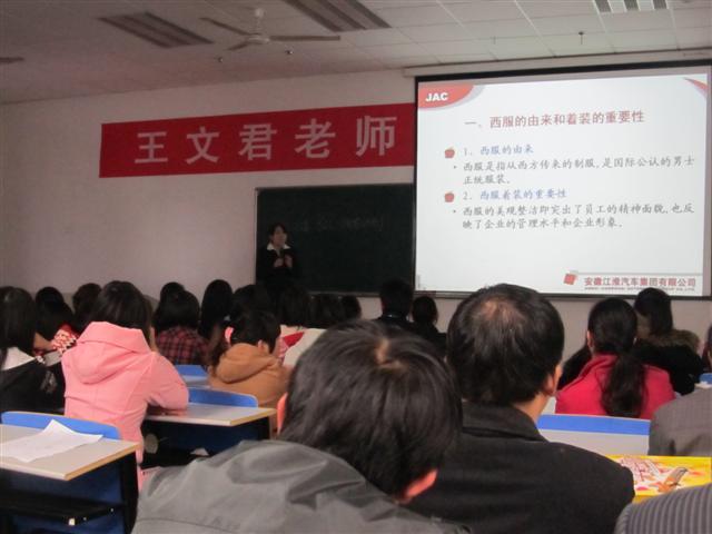 2011年11月16日下午4点30分,信息系组织全体教师参加了学院“精彩一课”教学示范课活动,来自安徽汽车职业技术学院青年教师、基础部主任王文君老师为我院教师献上了一堂精彩生动的“西服礼仪”课程。