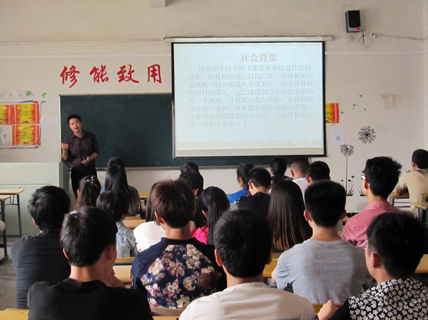 为了让2014级新生更深入地了解自己专业的课程设置、教学现状、发展前景及就业情况,树立起专业信心,在学习中作到有的放矢,以便规划好自己的大学生活,9月15日中午,信息工程系六个教研室分班召开了专业介绍会。