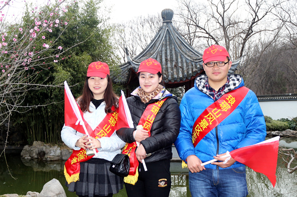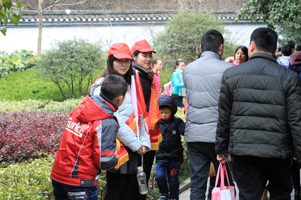 一大清早,我系志愿者就奔赴野芳园和琅琊寺两个景点,开展文明劝导、温馨提示、线路引导、人员疏散、助老扶幼等志愿服务。在有可能发生危险的路段对游客进行友情提示,在人群拥堵的景区出入口进行秩序维护和人员疏散,在游客有不文明行为时进行文明劝导,搀扶和帮助行动不便的老人及残障人士,志愿者们还帮助走失的儿童找到了爸爸妈妈……即便寒风凛冽,即便冬雨蒙蒙,身披绶带、头顶小红帽的青年志愿者们依然忙碌得热火朝天忙碌的。