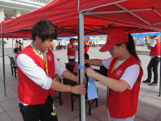 我系青年志愿者在固定帐篷