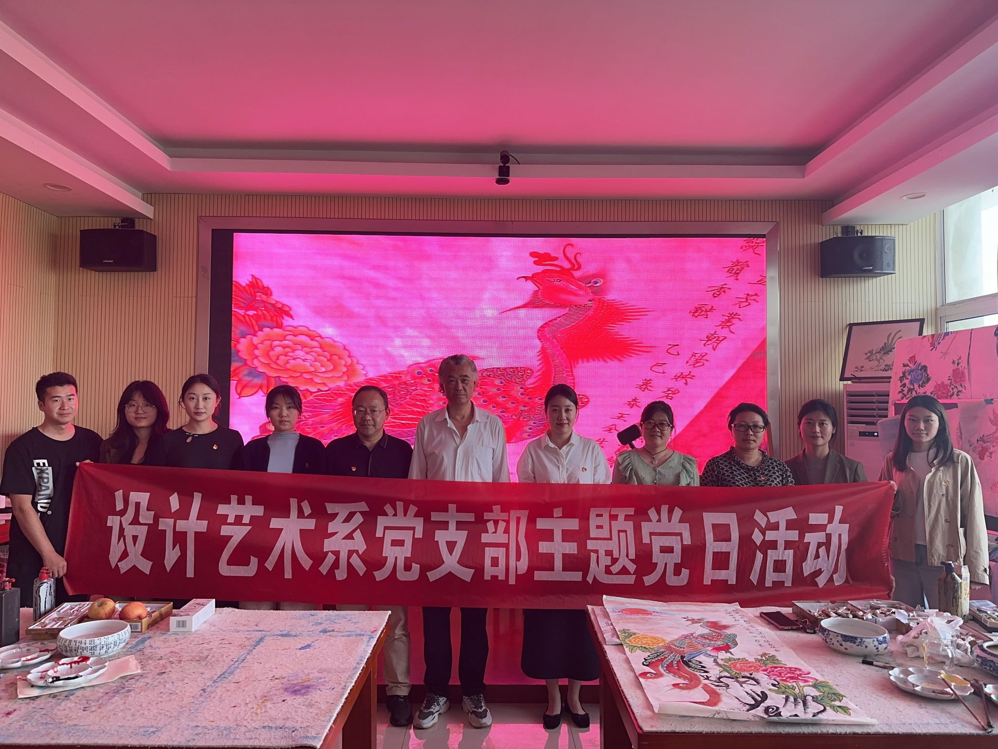 在交流互动环节,党员们与非遗凤画大师和传承人就凤画艺术与现代设计教育的融合进行了深入探讨。传承人们也分享了他们在凤画传承过程中的经验和心得,希望通过与高校的合作,让更多的年轻学子了解和喜爱凤画艺术,为凤画的传承与创新注入新的活力。教师们从专业角度出发,提出了将凤画元素融入设计课程教学、开展凤画主题设计实践活动等建议,旨在通过教育教学活动,培养学生对传统文化的认知和创新能力,推动非遗文化在校园中的传承与发展。此次党日活动,活动为党建工作与专业教育教学的协同发展提供了新思路和新方式,为非遗文化在高校的传承与创新搭建了良好的平台。
