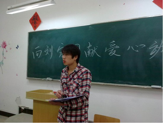 4月11日晚艺术系学生会召开向刘宏国献爱心动员会,学生会所有成员出席此次大会,会议由系学生会主席王培林主持。3月26日对我系09级建装一班的刘宏国一家来说却是一个黑暗的一天。当时还在教室上课的刘宏国,家里突然传来噩耗,父母出了车祸!短短十天内不但花光了家里所有的积蓄,还欠下了数十万元的债务,可肇事者至今还未找到,昂贵的医药费让其本不富裕的家庭雪上加霜。