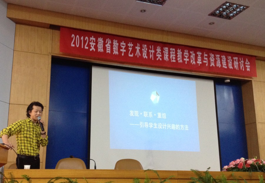 11月17--18日,2012全省数字艺术设计类课程教学改革与资源建设研讨会在合肥工业大学召开,研讨会以“设计的艺术”为主题,由CG行业知名人士李涛担任主讲。动画教研室主任范文娟代表艺术设计系参会。