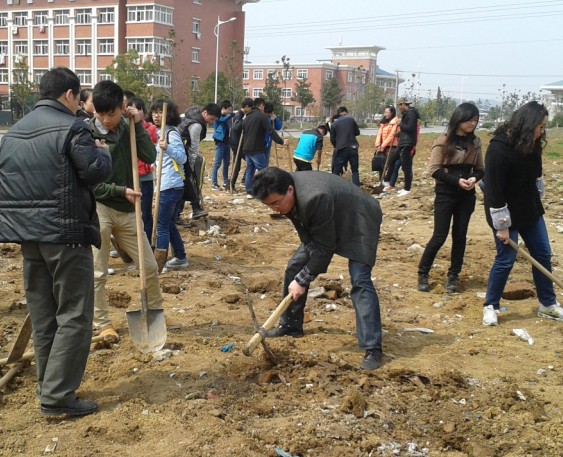 植树现场,忙碌的人们正挥锹培土到处是热火朝天的劳动场面。经过此次活动激发了同学们爱护花草树木的热情,师生上下“绿化美化校园、营造和谐育人环境”的意识明显增强。种下一片绿荫,收获一份幸福。让我们一起为环保活动,为构建绿色校园出一份自己的绵薄之力。