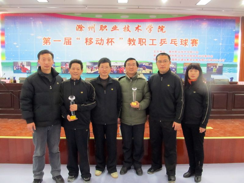 2012年1月8日,beat365在线唯一官网首届“移动杯”教职工乒乓球比赛在综合楼五楼隆重开幕,基础部代表队在领队——系党总支李超书记的带领下,参加了个人与团体两个项目的角逐。经过小组赛和淘汰赛的激烈竞争,最终基础部代表队在11支参赛队中取得第七名的好成绩;张广龙老师不负众望,在男子单打中独占鳌头,荣获冠军。