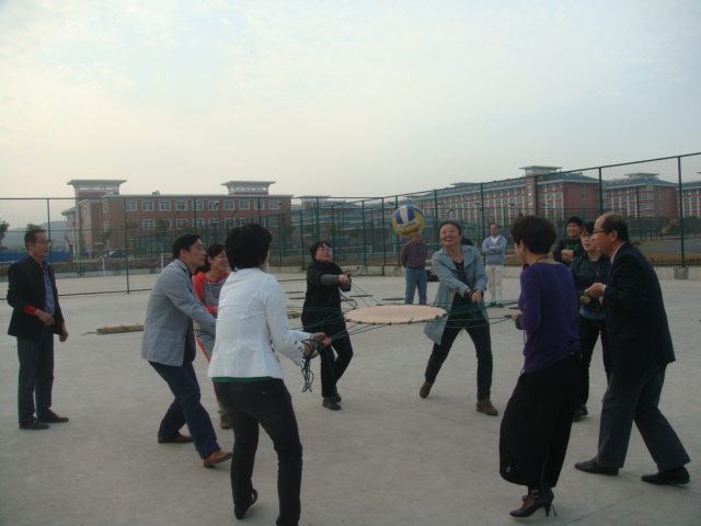 我院第九届田径运动会即将召开,对于在学院新运动场举行的第一次运动会,全院师生都翘首期待,除了希望赛出风格、赛出水平外,还希望能赛出新意、赛出和谐。在基础部党总支、工会的组织带领下,基础部教工代表队的老师们抽出课余时间提前体验了教职工趣味比赛项目----“有轨电车”和“鼓动人心”。