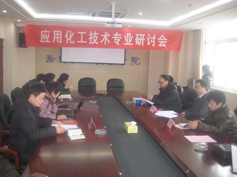 3月23日上午,生化工程系在综合楼9楼会议室召开了应用化工技术专业建设研讨会。参加会议的有市安全生产技术监督管理局高级化工工程师李万金、安兴彩纤副总经理曹春安、金丰化工公司高级化工工程师张剑双、定远职教中心招生办主任司杰和化工专业老师王家欢以及我院应用化工技术专业老师共20余人。