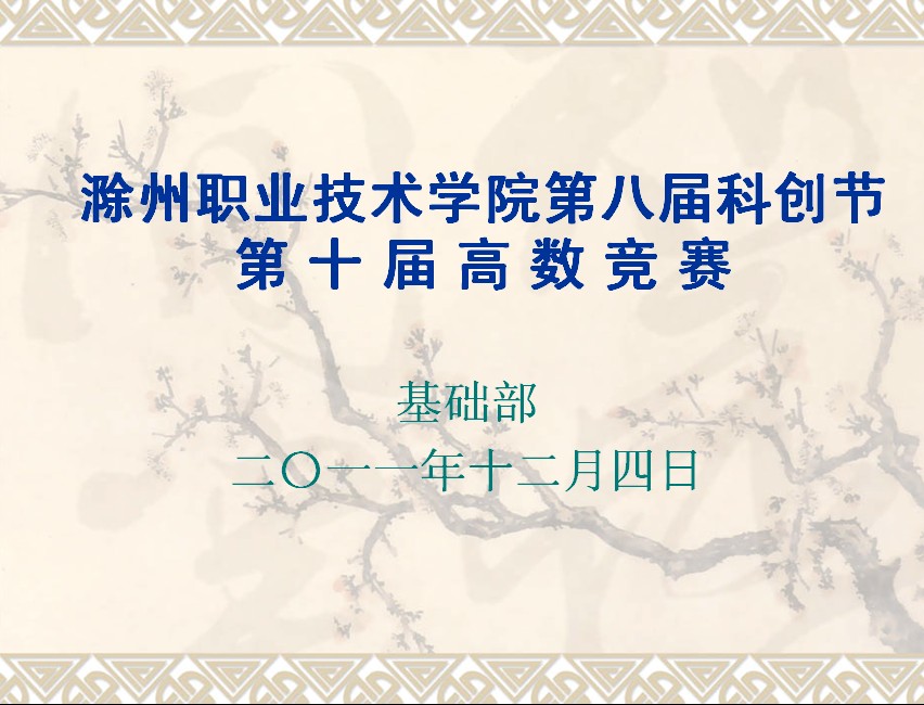 在第八届科技创新节期间我部承办了全院11级新生都能参加的高等数学知识竞赛。本次《高等数学》知识竞赛报名人数达三百多人。根据课程安排计划,将参赛考生共分为甲、乙两个小组进行比赛,其中甲组包括全院11级周课时6的学生,乙组包括全院10级周课时4的学生。除了普通高中生源,五年制生源和对口生源也积极参加报名。竞赛考试安排在12月4日上午8:30—10:30进行,安排了3个大考场,在部门的精心组织和全体工作人员的共同努力下,保证了今年竞赛的顺利进行。今年的竞赛是数学教研室主任张广龙老师总体组织和制定方案的;赛题是经过教研室研究讨论决定的,相关老师认真组织命题,力求标准;考务工作由部门办公室统一安排;全体数学教师下午加班阅卷。经过一个下午的阅卷工作和成绩汇总,按照考生的考试分数,甲、乙组分别取一等奖二名,二等奖四名,三等奖六名,优秀奖五名。