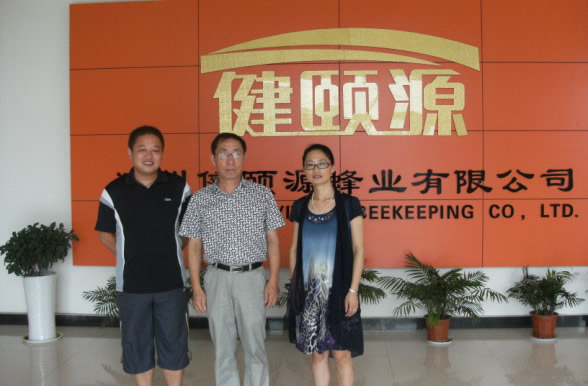 上图为肖陆飞老师和健颐源蜂业公司领导(中为王玉龙总经理,右为李艳主任)