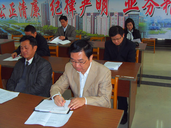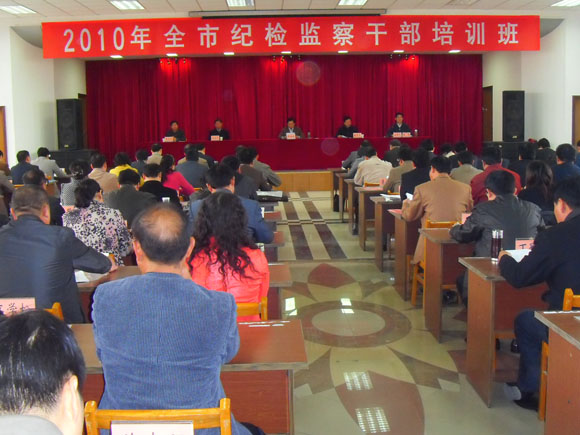 11月11日上午,全市2010年纪检监察干部培训班在我院老校区综合实训楼六楼多功能厅举行开班典礼,市纪委牛向阳书记作动员报告,市纪委副书记陈锋作题为《反腐倡廉的形势与任务》的报告。我院纪委牛春雨书记带领我院纪委全体委员及各系部纪检委员参加了开班仪式。院纪委委员、基础部党总支书记王冬同志、基础部纪检委员梁建军同志列席参加为期8天的学习培训。