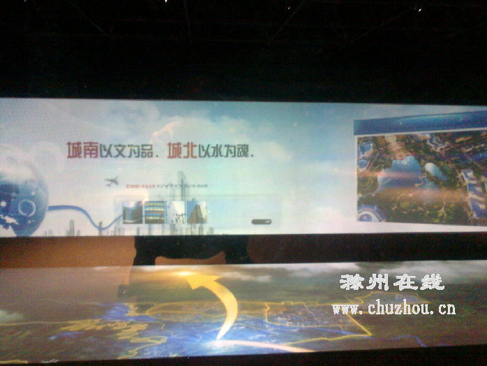 进入规划馆,一面滚动的电子屏幕,向我们介绍各级领导对滁州市的关怀,让人们感到滁州不是在孤独的前行,党和政府的关心像一轮太阳永远照耀在当代滁州城前进的路上。经过滁州区位图的展示墙,接着进入一个水晶宫似的展区,上下左右都是流光溢彩,旁边的图片组合向我们介绍滁州城市发展的定位,如同城市的电子名片。脚下一张巨大又清晰的滁州卫星遥感照片,让我们俯瞰整个城市,人们都在兴致盎然地看着找着自己的小区在哪里,哪栋楼是自己的家。这时,一个老师发现了老校区的操场跑道,大家是一阵惊喜和欢笑。