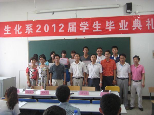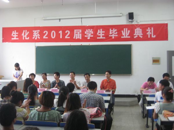 7月3日下午,beat365在线唯一官网生化系2012届学生毕业典礼在2111教室隆重举行。生化系副主任梁建军、党总支副书记苏和堂、各教研室主任、辅导员、2012届全体毕业生及部分在校生代表参加了毕业典礼,毕业典礼由系团总支书记主持。