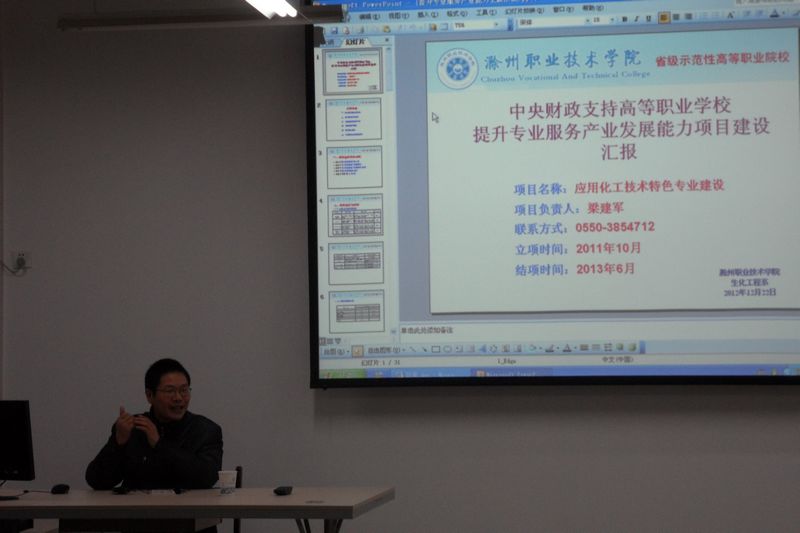 会上,刘义章老师代表项目组介绍了我院中央财政支持高等职业学校提升专业服务产业发展能力项目建设的相关情况,并与参会的省内兄弟院校领导和老师们对于化工专业的建设情况进行了研讨。