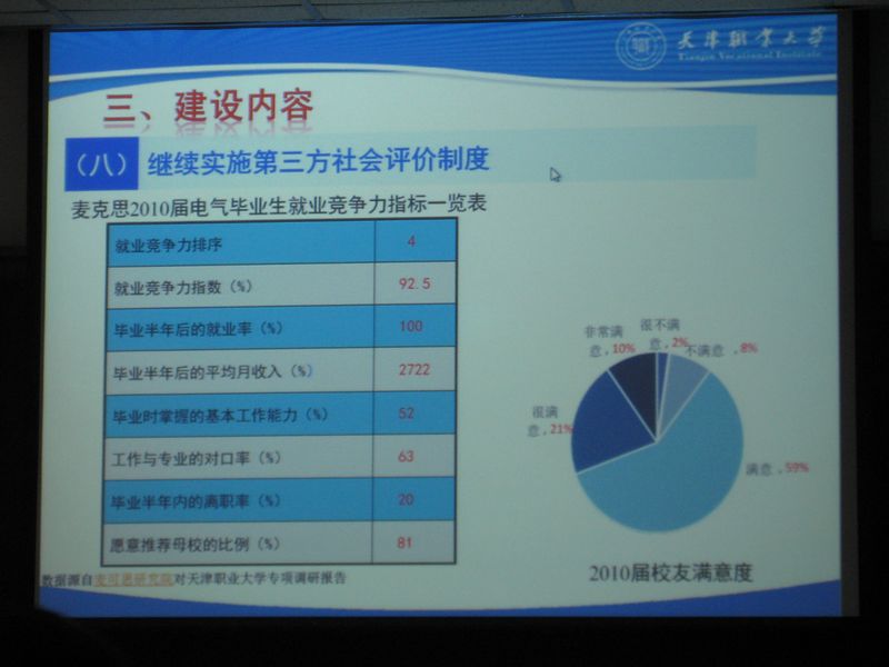 通过观摩理实一体化课程的教学过程,现场感受了项目化教学模式的开发和团队之间的协作性。在人才培养质量上,张教授强调了实施第三方社会评价制度的必要性,毕业生的就业竞争力指标主要体现在:就业竞争力指数、毕业半年后的就业率、就业半年后的平均月收入、毕业时掌握的基本工作能力、毕业半年内的离职率和工作与专业对口率等诸多方面。