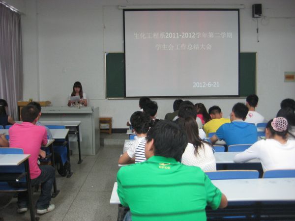 2011-2012学年第二学期即将结束,为总结工作、查找不足,近期生化系学生会团总支联合召开学期工作汇报会,系团总支书记张老师听取了工作汇报,全系团学干、各班班长及团支书参加了会议。