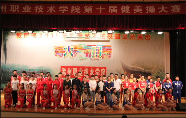 为了锻炼学生的身体和心理素质,丰富滁职学子的课余生活,2015年5月27日,由学院团委主办,汽车系承办的第十二届校园文化艺术节暨“三走”系列活动之健美操比赛在学院一楼报告厅隆重举行.