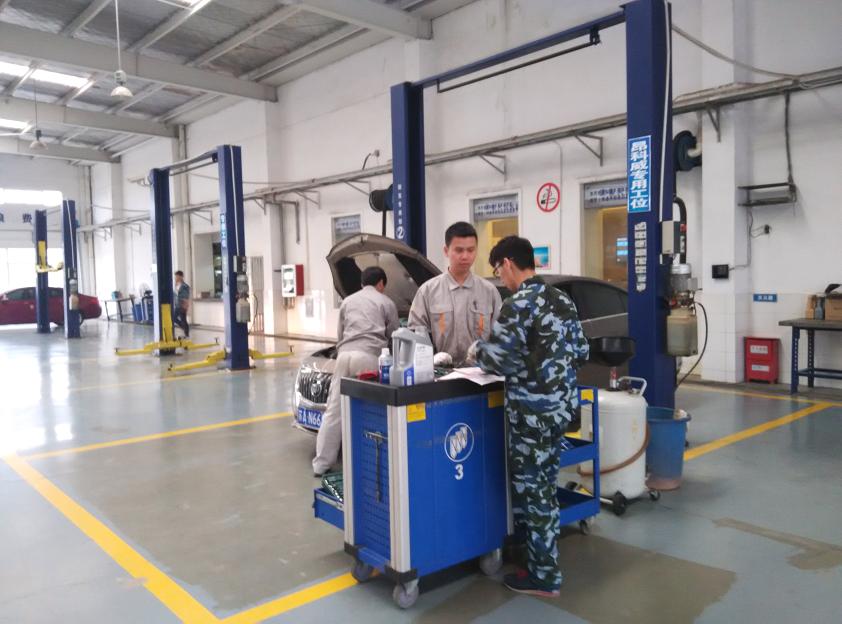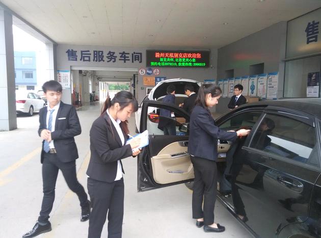 根据汽车系的统一安排,14汽营(2)班15名同学进入安徽滁州天弘别克4S店实习。15名学生根据自己的选择被分在三个不同的岗位实习,分别是售前的汽车销售、售后业务接待和售后服务车间。
