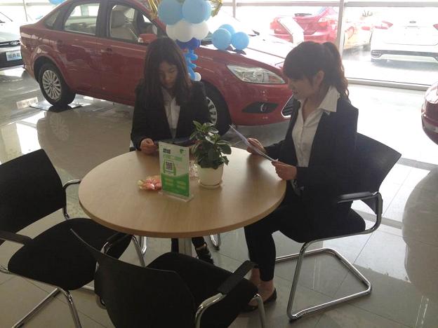 我们非常高兴拥有这次机会,这次我们组被派遣到福特正丰4S店,经理热情地接待我们并且向我们介绍了福特汽车的辉煌历史,简述了一些简单的营销手段。接着按岗位需要把我们八人分成四组,分别从事销售和客服工作。