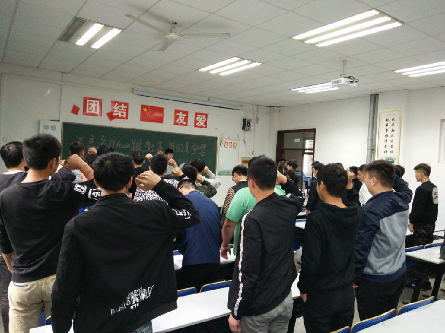 “我志愿加入中国共产主义青年团,坚决拥护中国共产党的领导,遵守团的章程,执行团的决议,履行团的义务,严遵团的纪律,勤奋学习,积极工作,吃苦在前,享受在后。为共产主义事业而奋斗。”在鲜艳的团旗下,同学们紧握右拳高高扬起,铿锵誓言豪气冲天。